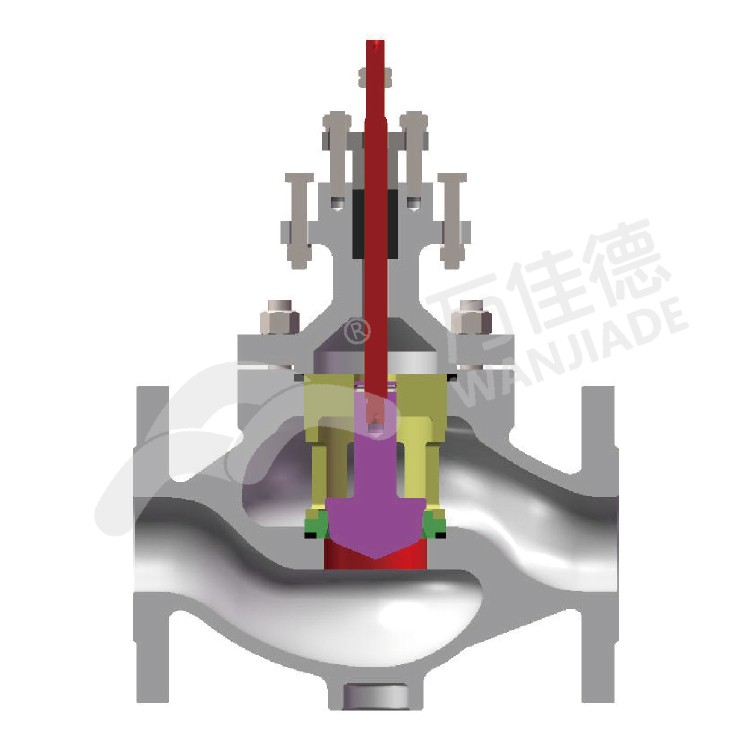 閥體結構緊湊,流體通道呈S型,設有導流翼,防止親流