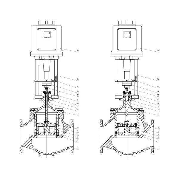 閥體流道呈S型,設有導流翼,使其壓降損失小,流量大, 可調范圍廣,流量特性精度高