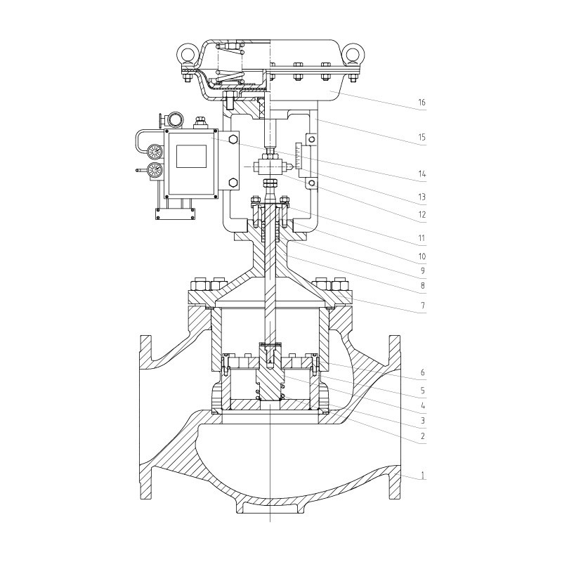 配用多彈簧薄膜執(zhí)行機(jī)構(gòu)或氣缸執(zhí)行機(jī)構(gòu),其結(jié)構(gòu)緊湊、輸出力大