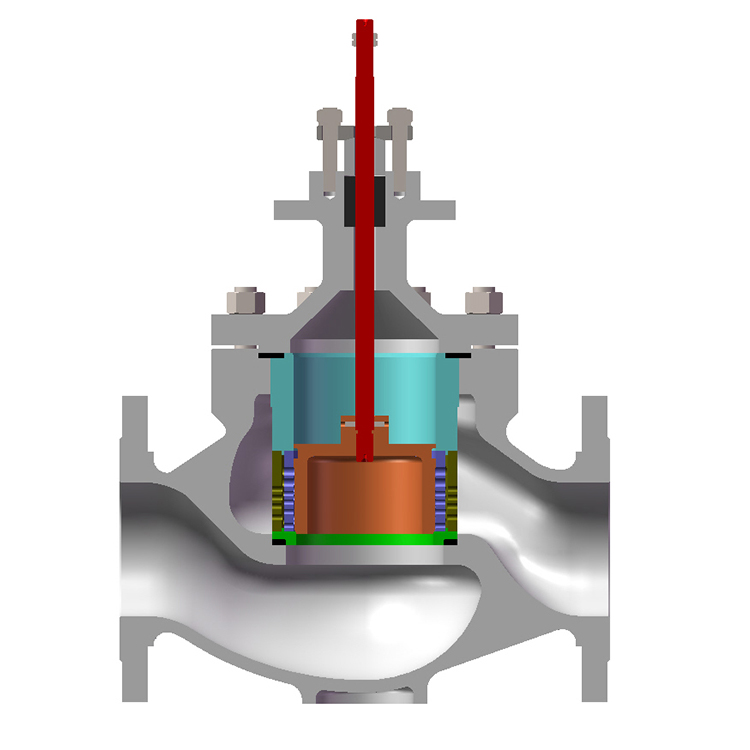 閥體結構緊湊,流體通道呈S型,設有導流翼,防止素流