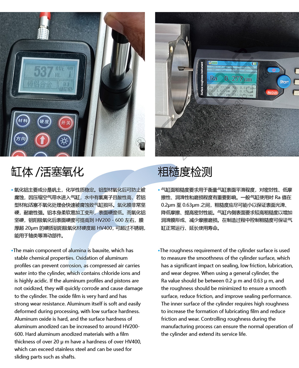 · 擠壓的優質鋁合金缸體,經精密加工的內孔和外部表面進行硬質陽極氧化處理(特殊情況下陽極氧化 +特氟隆涂層),使壽命更長,摩擦系數低。