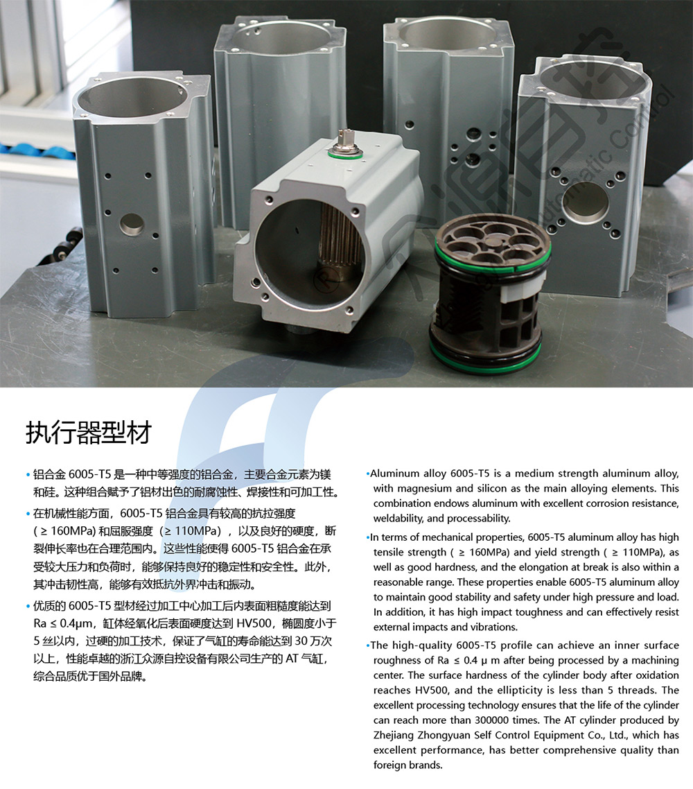 · 一體式設計,所有的雙作用和單作用執行器型號,都具有相同的缸體和端蓋,很方便通過加裝彈簧來改變作用方式。